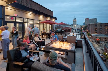 The seven-story building features many amenities for its urban residents. There is a large Community Room space (Conexión) on the 1st level, generously sized elevator lobbies on each floor each furnished according to a special theme, and a 6th floor glass-enclosed party room with outdoor terrace and fire table. The individual units include full kitchens, walk-in showers and spacious closets with wire shelving. Each unit has an outdoor balcony, many with dramatic views of the city skyline. A secure, fully indoor parking garage on the 1st floor has space for 41 vehicles and 24 bicycles, plus several charging stations for electric vehicles. There are property management and maintenance staff stationed on-site.